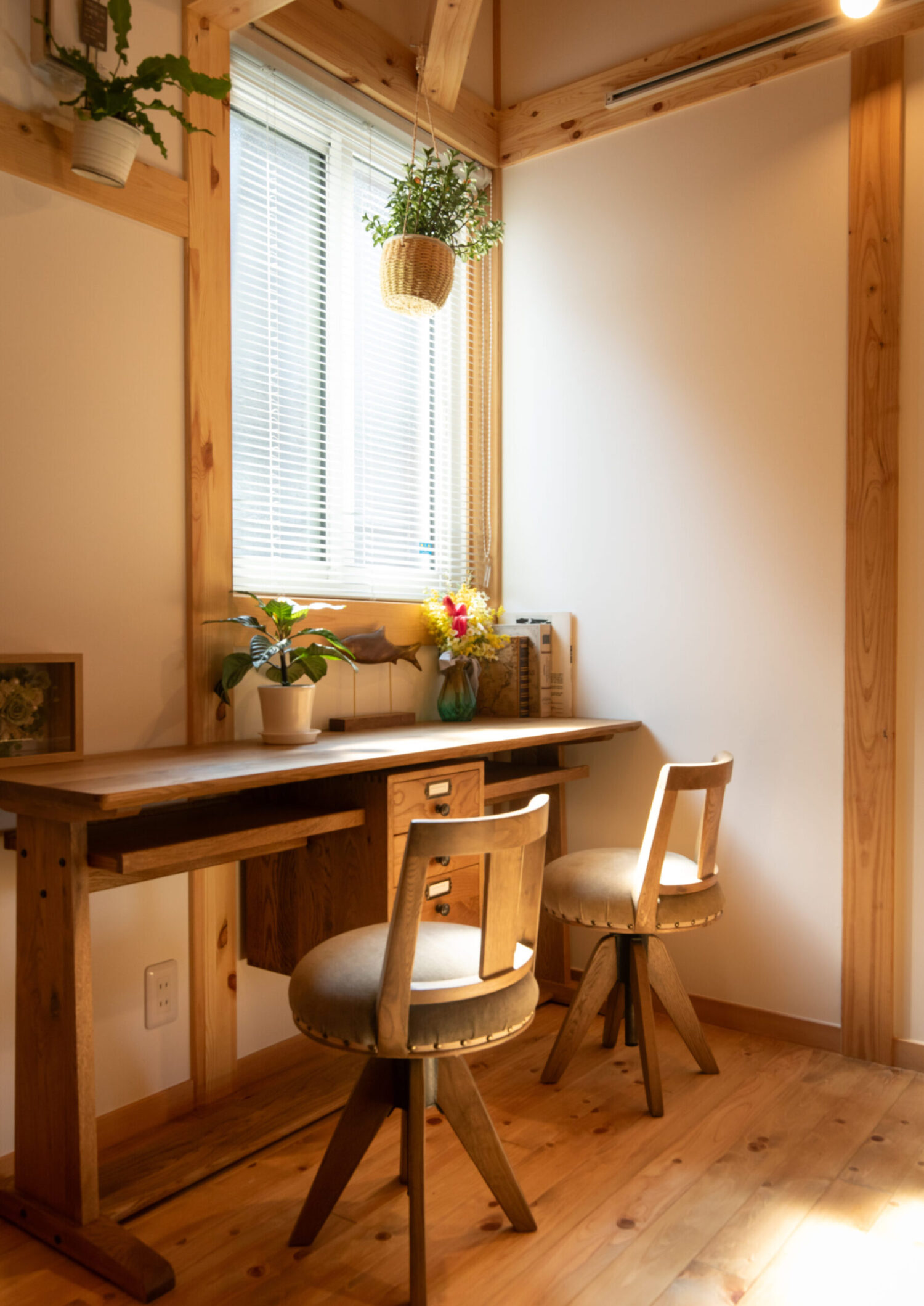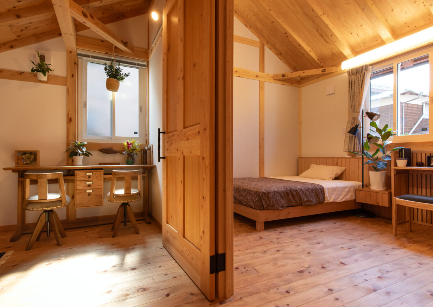 無垢の木材をふんだんに使った、