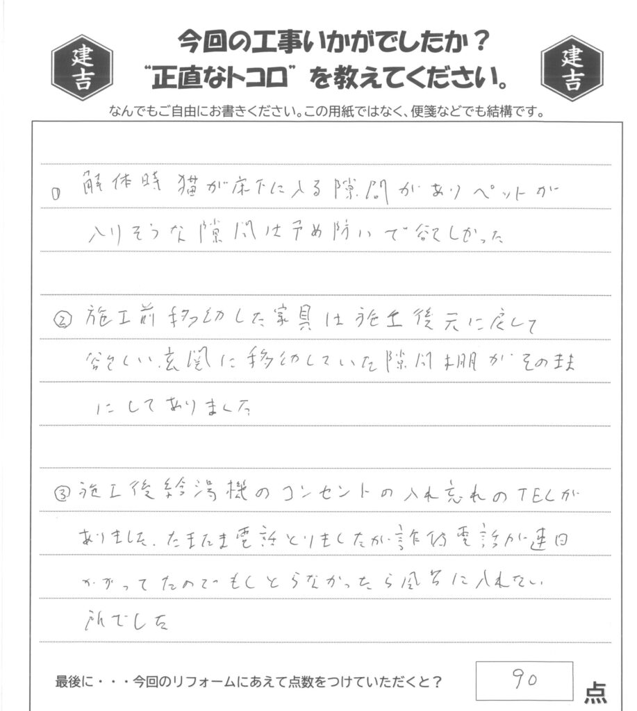 ①解体時猫が床下に入る隙間がありペットが入りそうな隙間は