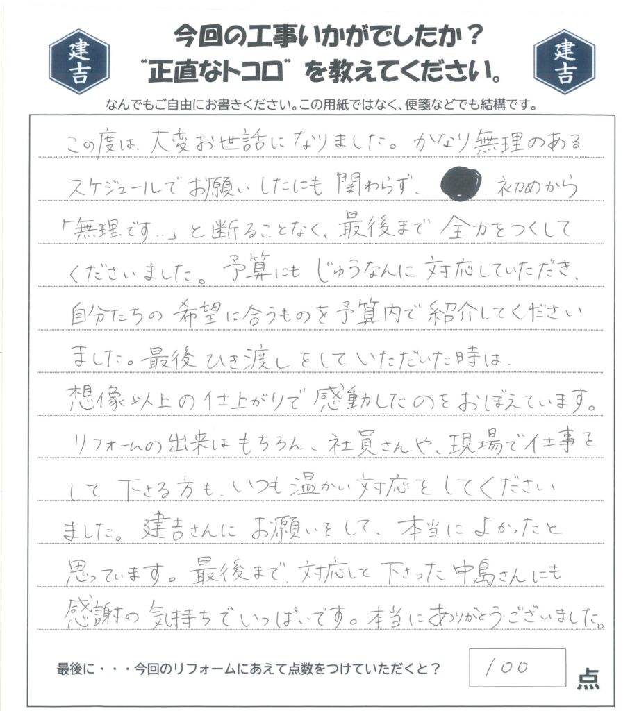 した。建吉さんにお願いをして、本当によかったと思っています。